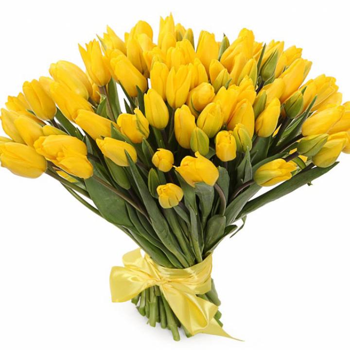 Букет тюльпанів: 101 голландський тюльпан; Колір жовтий; Висота: від 35 см до 55 см;